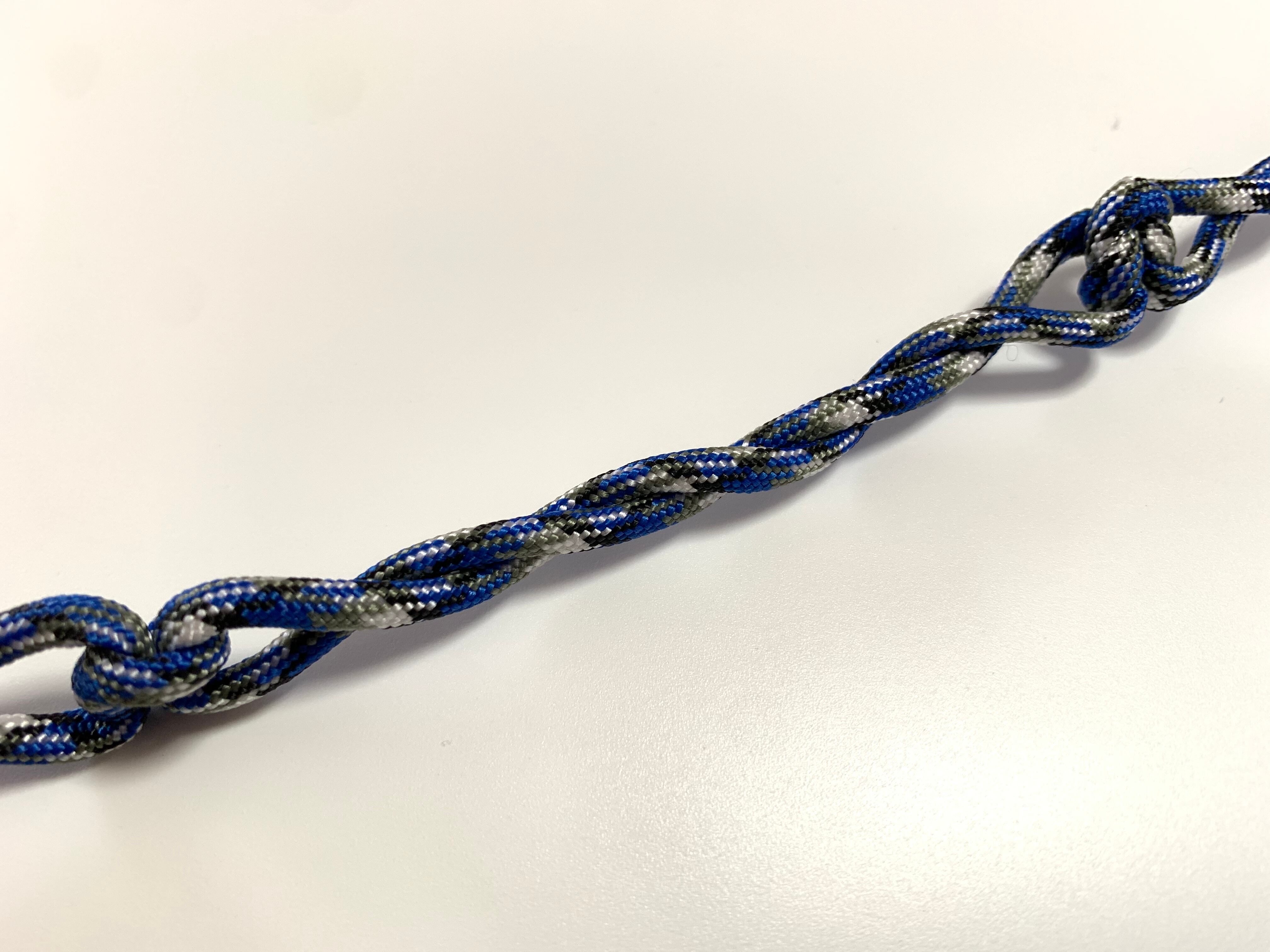 ねじった部分がゆるまない様に約9cm間隔で本結びをしています。